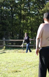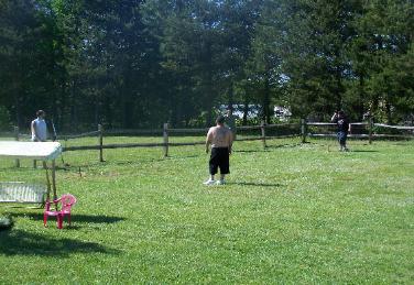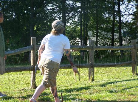 dogs, pitching horseshoes.